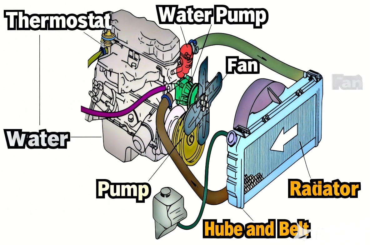 (1) Mga Bahagi ng Sistema ng Pagpapalamig: Kinokontrol ng thermostat ang landas ng sirkulasyon ng coolant (maliit na loop para sa mabilis na pag-init, malaking loop para sa pinahusay na pagwawaldas ng init); tinitiyak ng water pump, radiator, at fan ang kahusayan ng daloy ng coolant at kakayahan sa pagwawaldas ng init.
